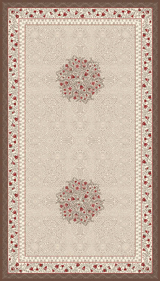 Aubrac Taupe Red French Jacquard Tablecloth 56” X 98”