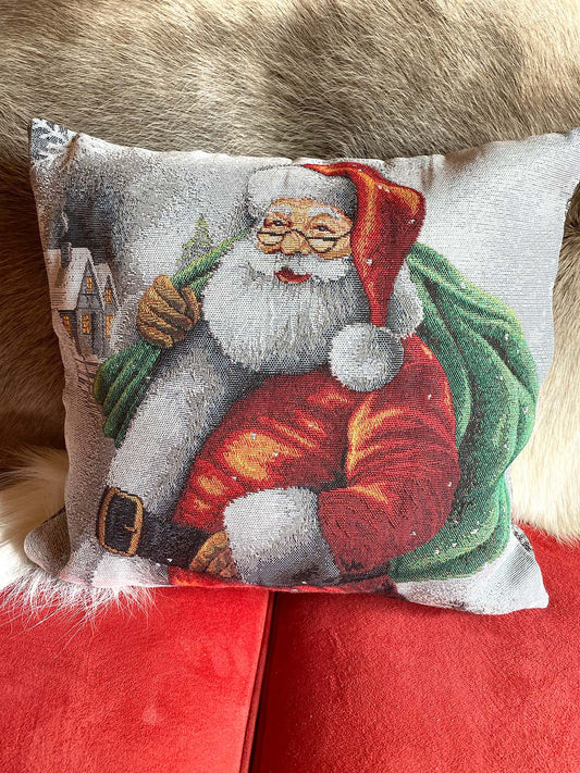 Claus Holiday French Jacquard Pillow Cover, Table Runner, Sofa Throw
