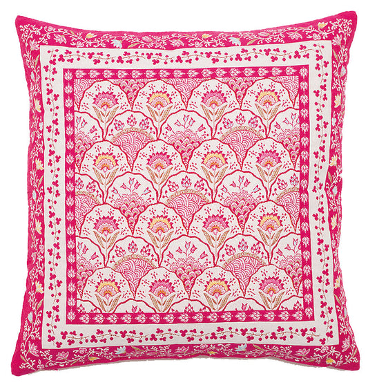 Garance Flowers Fuchsia Blue French Jacquard Pillow Cover