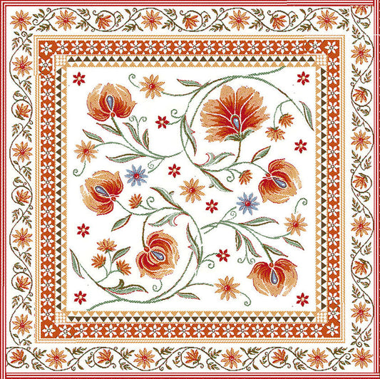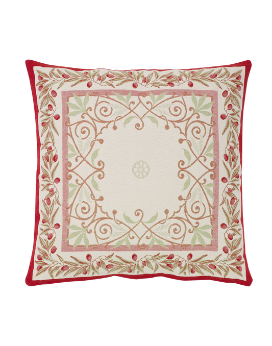 Sillans Ecru Red Autumn French Jacquard Pillow Cover