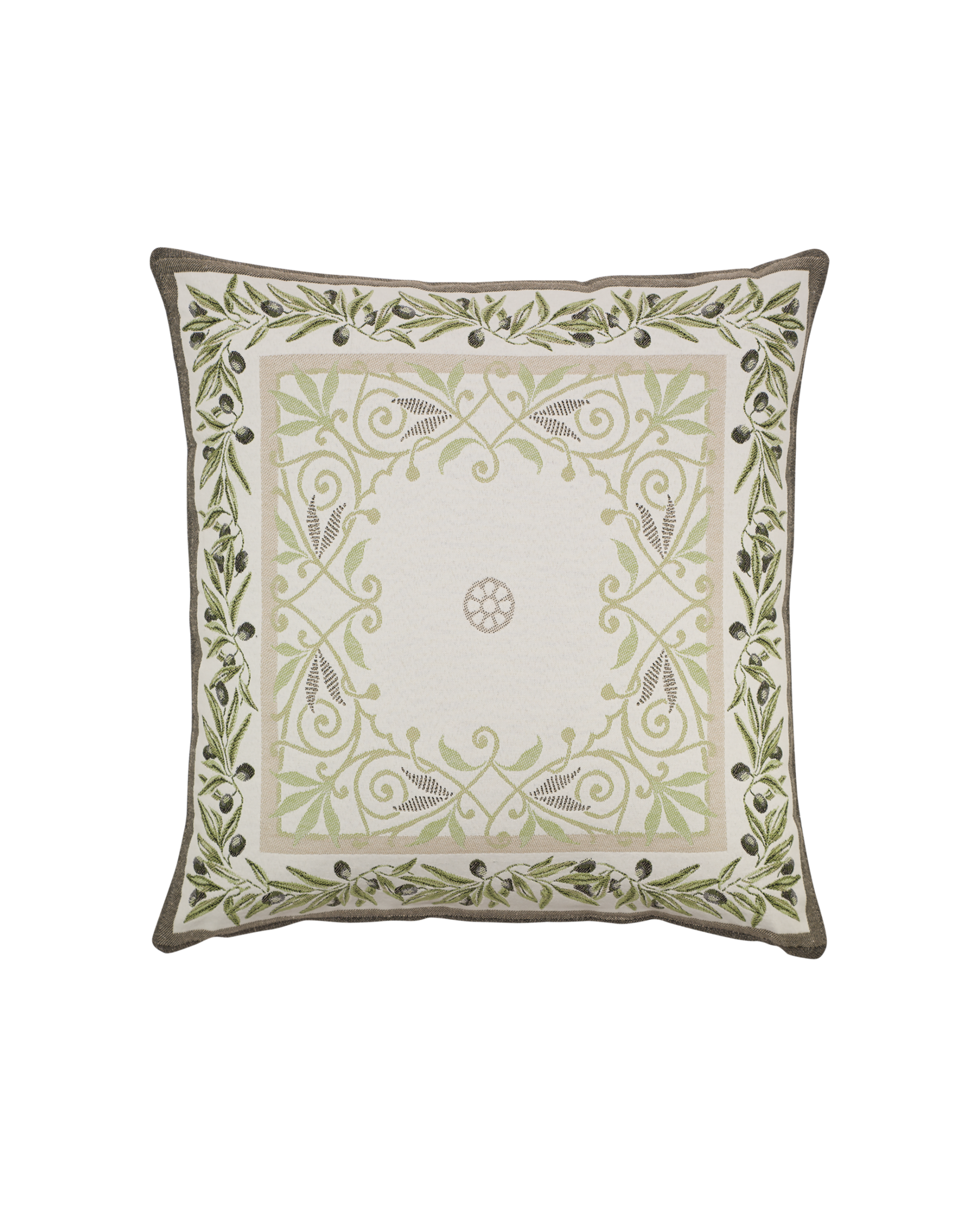 Auriol Olive Twigs Linen Green French Jacquard Pillow Cover