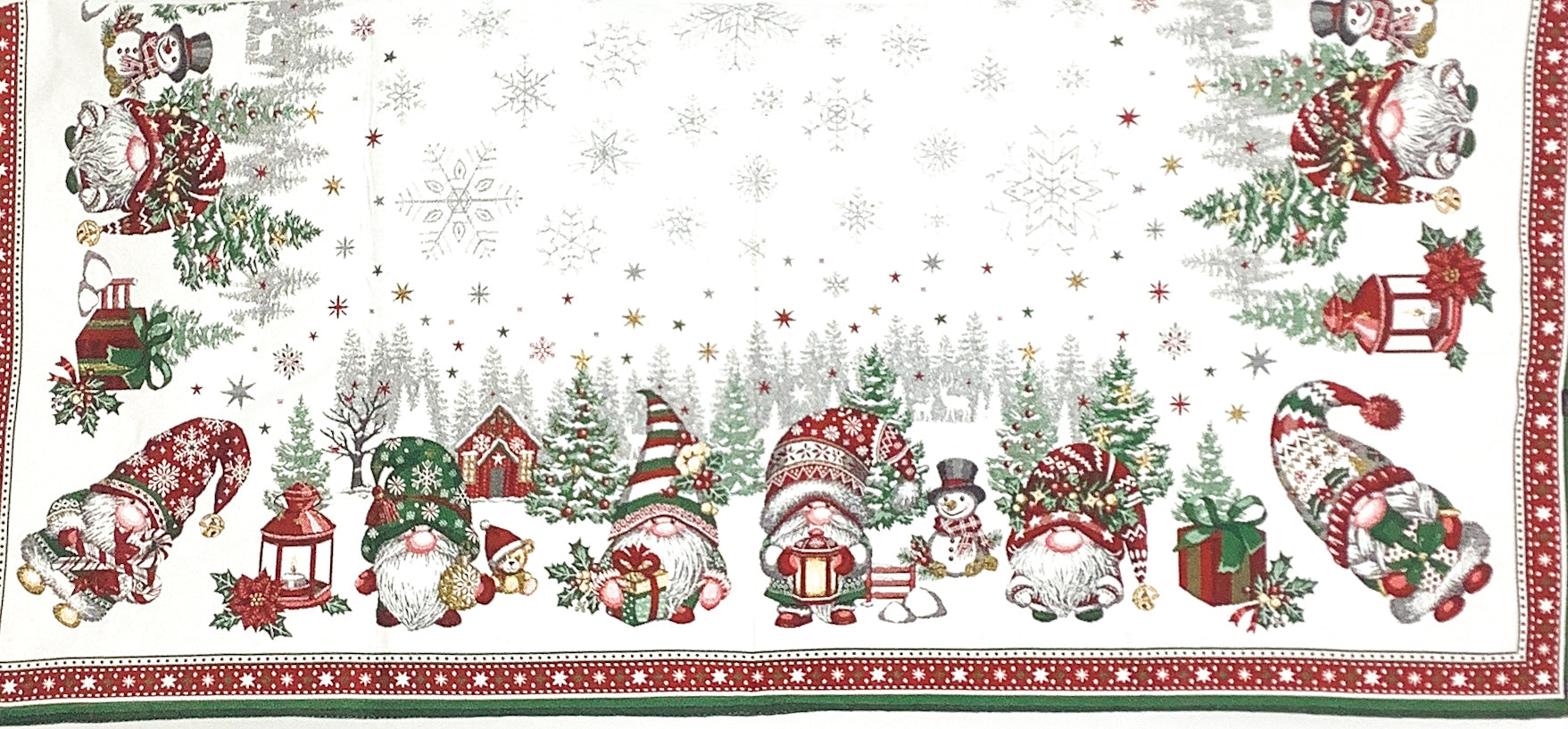 Gnomes Square French Jacquard Table Cover 39” X 39” Holiday