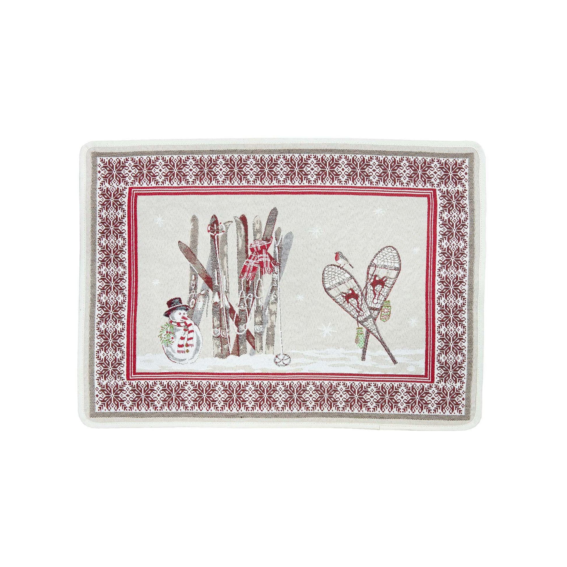Luge Snowman Ski French Jacquard Placemat